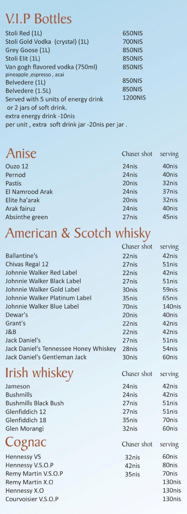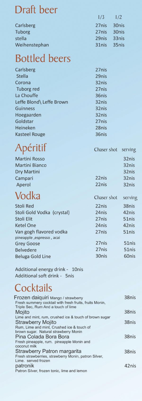 בורה בורה - drink menu